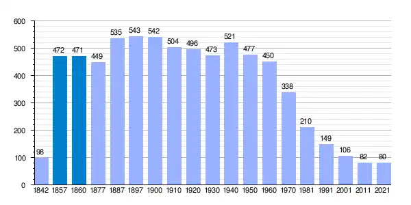 | Gráfica de evolución demográfica de Canillas de Abajo[6] entre 1842 y 2021 |