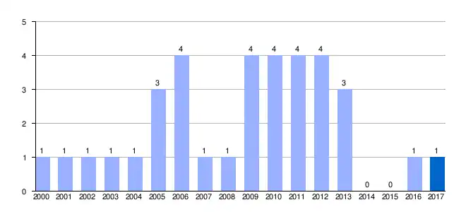 | Gráfica de evolución demográfica de Canillejas[1] entre 2000 y 2017 |