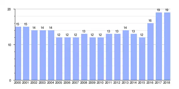 | Gráfica de evolución demográfica de Canle entre 2000 y 2018 |