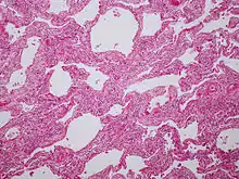 El curso clínico puede manifestarse de forma aguda, subaguda, en función de la intensidad de exposición. Las exposiciones mantenidas dan lugar a la forma crónica con evolución a la fibrosis pulmonar. La función pulmonar disminuye tras unas horas de exposición en el trabajo y mejor tras finalizar la jornada laboral. Es una enfermedad progresiva en la que si hay una exposición continuada durante muchos años, puede incluso provocar la muerte por fracaso en el ventrículo derecho.[3]