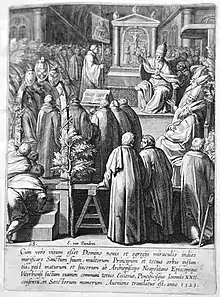 En 1324, el capítulo general de la Orden Dominicana se reunió para discutir la veneración de Santo Tomás de Aquino.[19] Acordaron que sería exaltado como uno de los más grandes santos dominicos, superando a Pedro de Verona y situándose justo detrás de Santo Domingo en importancia.[20] La fiesta de Tomás fue confirmada por el capítulo en 1326,[21] con la liturgia —una oración y nueve lecciones[22] finalizada en 1328.[23] En 1348, Onorato I Caetani obtuvo los restos de Tomás de Aquino. de los cistercienses.[24] En 1369, después de casi un siglo de controversia,[25] ya instancias del Papa Urbano V,[26] los cincuenta[27] huesos del cadáver de Tomás fueron entregados a los dominicos franceses en Toulouse.[15] Aunque inicialmente se encontraban en la Iglesia de los Jacobinos, los restos fueron trasladados a la Basílica de Saint-Sernin durante la Revolución Francesa en 1789 y solo regresaron a la Iglesia de los Jacobinos en 1974.[28] En 1969, su onomástica se trasladó del 7 de marzo, que a menudo coincidía con la Cuaresma, al 28 de enero, fecha de su traslado a Francia.[29][30][31]