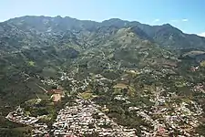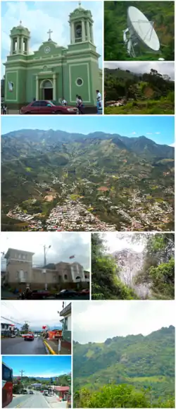 ![]() De arriba abajo, de izquierda a derecha: Parroquia San Luis de Tolosa, antena del ICE en Tarbaca, vista de la ruta n.° 209, panorámica de los Cerros de Escazú, Municipalidad de Aserrí, vista de la Piedra de Aserrí, calle en el centro de Aserrí, vista de una montaña y la Piedra de Aserrí, calle en Tarbaca.