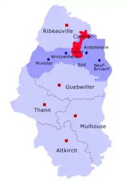 En aplicación del Decreto n.º 2014-207[2] de 21 de febrero de 2014, el cantón de Colmar-Norte fue suprimido el 22 de marzo de 2015 y su fracción de comuna pasó a formar parte del nuevo cantón de Colmar-1.