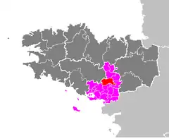 En aplicación del Decreto n.º 2014-215[2] de 21 de febrero de 2014, el cantón de Malestroit fue suprimido el 22 de marzo de 2015 y sus 14 comunas pasaron a formar parte; trece del nuevo cantón de Moréac y una del nuevo cantón de Ploërmel.