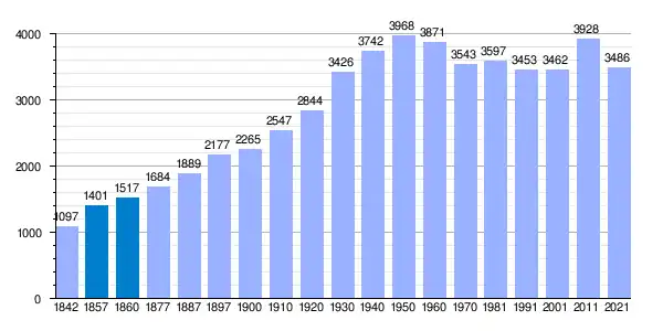 | Gráfica de evolución demográfica de Cantalejo[10] entre 1842 y 2021 |