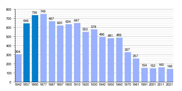 | Gráfica de evolución demográfica de Cantalojas[6] entre 1842 y 2021 |