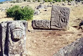 Además, se pueden citar grupos de dioses de las montañas con los brazos cruzados sobre el pecho, relieves de escenas de caza y un hombre-oso. Se cree que estos objetos fueron encargos especiales. Los dioses de las montañas se parecen a los usados como soporte en el santuario de Eflatun Pınar.