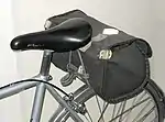 Las bolsas van desde pequeñas hasta grandes (más de 25 litros). Las bolsas más pequeñas, conocidas como bolsas de asiento, bolsas de cuña o bolsas de asiento, caben completamente debajo del sillín. Las bolsas más grandes que sobresalen por detrás y hacia los lados se suelen llamar cantinas ; un ejemplo bien conocido es el Carradice Long Flap, durante muchos años un elemento básico de los cicloturistas británicos, especialmente los fines de semana.