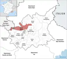 - Distrito de Barcelonnette[1] (2 cantones - subprefectura: Barcelonnette):