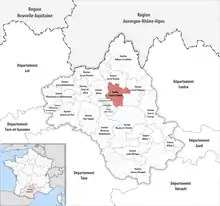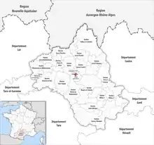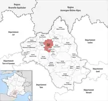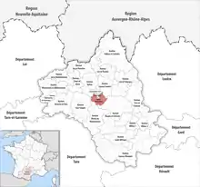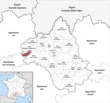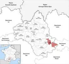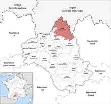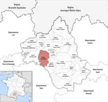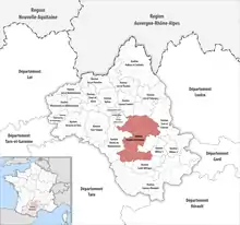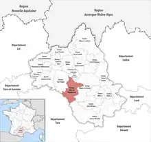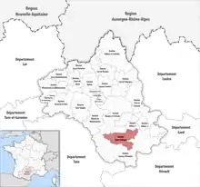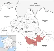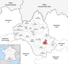 - Distrito de Villefranche-de-Rouergue[3] (8 cantones - subprefectura: Villefranche-de-Rouergue):