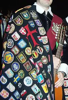 En la parte delantera se lucen los escudos de los lugares visitados con la tuna.