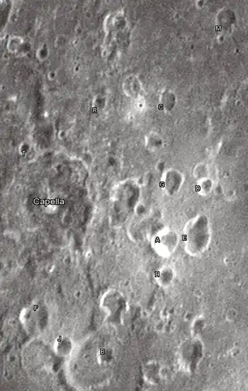 Por convención estos elementos son identificados en los mapas lunares poniendo la letra en el lado del punto medio del cráter que está más cerca de Capella.