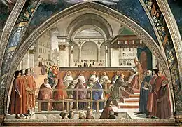 Posiblemente, Ghirlandaio nunca había visto las Historias de San Francisco en la Basílica de San Francisco de Asís, pero ciertamente debió haberlas visto en la Capilla Bardi de Santa Croce en Florencia, pintadas por Giotto a principios del siglo XIV.