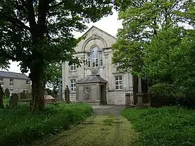 La entrada al edificio se realiza a través de una puerta en el lado norte, los bancos bajos de piedra están construidos a lo largo de los muros norte y sur y una campana en espadaña se encuentra en su extremo oeste.[nota 1][3] Se cree que el tejado de pizarra es una adición moderna en comparación con el resto del edificio.[3]