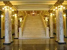 En el segundo piso, la escalera de mármol conduce a una rotonda. La cúpula de la rotonda tiene 29,2 metros de altura. El anillo inferior está diseñado para parecerse a una cadena de cintas unidas, lo que pretende simbolizar la naturaleza eterna del gobierno. El interior de la cúpula está decorado con dieciséis imágenes del Árbol de la Vida. La cúpula también muestra hojas de acanto para representar la sabiduría y una flor de pasque, que es la flor del estado.[7]