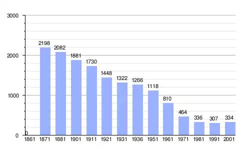 | Gráfica de evolución demográfica de Capranica Prenestina entre 1861 y 2001 |