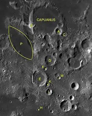 Por convención estos elementos son identificados en los mapas lunares poniendo la letra en el lado del punto medio del cráter que está más cerca de Capuanus.
