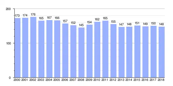 | Gráfica de evolución demográfica de Carantoña[4] entre 2000 y 2018 |