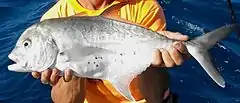 - Esta obra contiene una traducción derivada de «Caranx bucculentus» de Wikipedia en catalán, publicada por sus editores bajo la Licencia de documentación libre de GNU y la Licencia Creative Commons Atribución-CompartirIgual 4.0 Internacional.