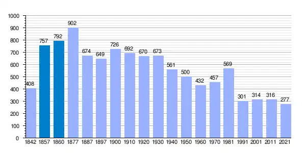 Población de derecho según los censos de población del INE. Población de hecho según los censos de población del INE.Entre el Censo de 1857 y el anterior, crece el término del municipio porque incorpora a 225236 (Saravillo). |