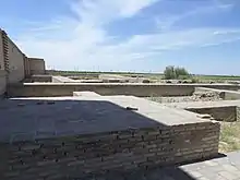 De la antigua construcción únicamente queda el portal del caravasar.[4] Está hecho de adobes de 25x25x4 cm.[4] Este portal con arco de contrafuerte y abertura rectangular es uno de los más antiguos y grandes de Asia Central.[4] El perímetro está decorado con inscripciones árabes.[4] Ha sido parcialmente restaurado, pero sigue siendo en su mayor parte auténtico.[4] Su tipo de decoración es poco común en Asia Central, similares se pueden encontrar en el alminar de Dzhar Kurgan y en el arco del Shahriar en Merv.[6] Queda una de las murallas, que ha sido completamente reconstruida.[6][2]