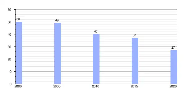 | Gráfica de evolución demográfica de Carballal (aldea) entre 2000 y 2020 |