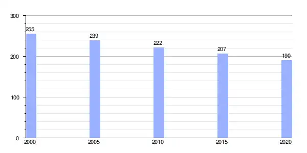 | Gráfica de evolución demográfica de Carballedo (parroquia) entre 2000 y 2020 |