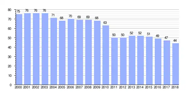 Gráfica de evolución demográfica de Carballeira entre 2000 y 2018