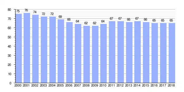 | Gráfica de evolución demográfica de Carballotorto entre 2000 y 2018 |