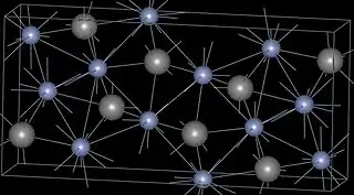 ![]() Estructura del Cr3C2. Los átomos grises son de carbono. | ||