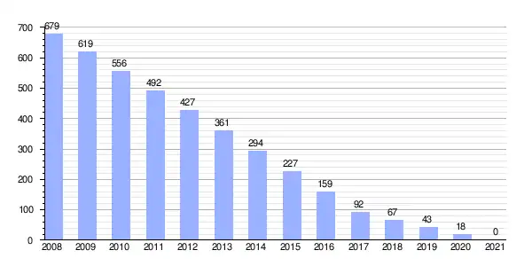 | Gráfica de evolución de la deuda viva del Ayuntamiento de Carcabuey entre 2008 y 2021 |