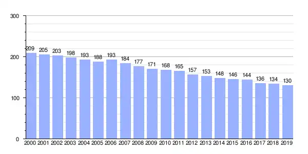 | Gráfica de evolución demográfica de Cardama (parroquia) entre 2000 y 2019 |