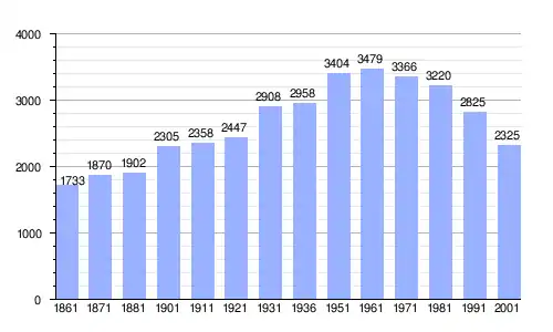 | Gráfica de evolución demográfica de Cardeto entre 1861 y 2001 |
