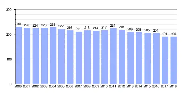 | Gráfica de evolución demográfica de Cariño entre 2000 y 2018 |