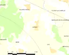 - Situación de Carisey en un mapa de Francia y de comunas limítrofes Archivado el 7 de enero de 2009 en Wayback Machine. (en francés)