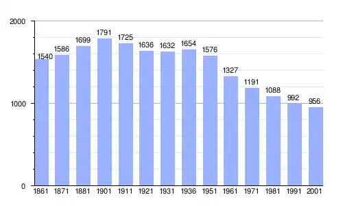 | Gráfica de evolución demográfica de Carisio entre 1861 y 2001 |