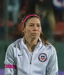 ![]() Guerrero con la camiseta de la selección femenina de fútbol de Chile en 2018. | ||