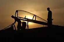 En muchas aeronaves militares de alto rendimiento, la carlinga es una parte integral del sistema del asiento eyectable. El piloto no puede ser expulsado de la aeronave hasta que la cubierta transparente haya dejado libre el camino para eyectar el asiento. En la mayoría de los aviones equipados con asientos eyectables, la carlinga se lanza hacia arriba y hacia atrás mediante cargas explosivas. El viento relativo impulsa la carlinga lejos de la ruta de expulsión del piloto. Sin embargo, en algunas aeronaves, como el Harrier,[7] el piloto puede verse obligado a saltar cuando está en vuelo estacionario o cuando va demasiado lento para que el viento relativo impulse la carlinga fuera de la trayectoria del asiento eyectable. En esa situación, el piloto posiblemente podría impactar con el paracaídas contra la carlinga al ser expulsado. Para evitar esa posibilidad, algunos aviones disponen de un cordón delgado de explosivo plástico situado en zigzag a través de la carlinga sobre la cabeza del piloto. En el caso de una expulsión de emergencia, el cordón explosivo se activa primero, rompiendo el dosel. Luego, el asiento eyectable y el piloto se lanzan a través de la carlinga previamente desmantelada.