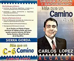 El 31 de octubre de 2004, en el marco de las elecciones municipales de Chile de 2004, Carlos López Vega fue elegido como alcalde de Sierra Gorda con el 30,07% de los votos, derrotando a los candidatos José Guerrero Venegas y Jorge Poblete Espinoza. El 6 de diciembre de 2004, López asumió como alcalde[5][6], destacándose la construcción de la Posta de Salud Rural (PSR) y de la población en Estación Baquedano, así como la edificación de la cancha de pasto natural en la localidad de Baquedano y la de pasto sintético en la comuna de Sierra Gorda.