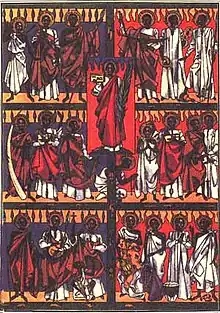![]() Carlos Lwanga (en el centro) y sus 21 compañeros en una pintura de Albert Wider (1962). | |||