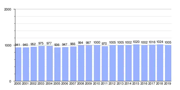 En 2021 la población ascendió a 1065 personas (547 hombres y 518 mujeres)[5].