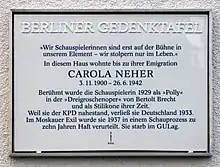 - Biografía de Carola Neher en la web de Monumento a la Resistencia Alemana