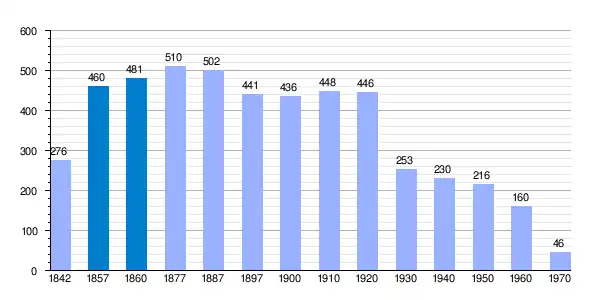 Población de derecho según los censos de población del INE. Población de hecho según los censos de población del INE.Entre el Censo de 1857 y el anterior, crece el término del municipio porque incorpora a 19205 (Oter). |