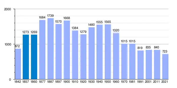 | Gráfica de evolución demográfica de Carratraca[5] entre 1842 y 2021 |