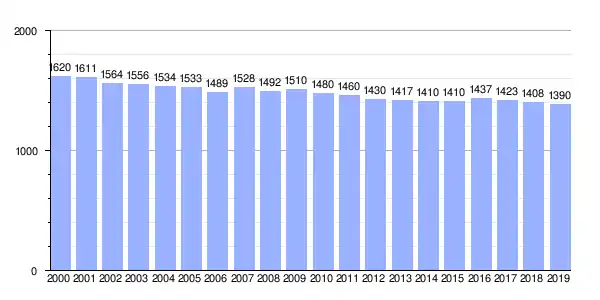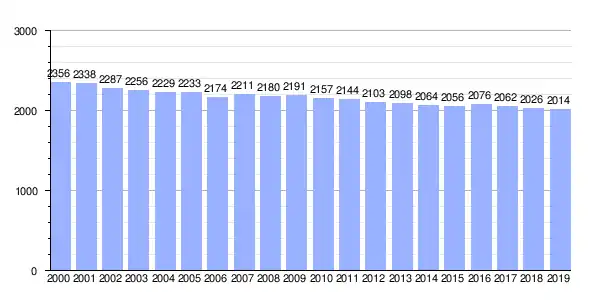 | Gráfica de evolución demográfica de Carreira (parroquia) entre 2000 y 2019 |
