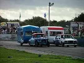 En Europa del Norte se organizan carreras en circuitos (llamadas en inglés banger racing) en las que los pilotos deben completar la mayor cantidad de vueltas lo más rápido posible, pero se permite golpear a los rivales a propósito. En Estados Unidos existe una variante de esta modalidad en la que las pistas tienen forma de ocho con un cruce en el centro, sea a nivel o con un salto.