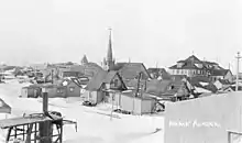 Shaktoolik–Golovin Perros líderes: Togo (12 años) y Scotty. Había salido de Nome con la intención de recibir el suero en Nulato, sin saber que los relevos se habían adelantado. Viajó 69 km desde Isaac's Point, en el norte de Norton Bay, hasta las afueras de Shaktoolik, donde se encontró con Ivanoff. Condujo a su equipo contra al viento, con una temperatura de -34 °C y en la oscuridad. Se arriesgó a cruzar 32 km de mar helado entre Cap Denbigh y Point Dexter en una ventisca cegadora. El sentido del olfato de Togo les permitió mantener el rumbo y los llevó a la parada en la costa norte de Norton Bay, un iglú esquimal. Seppala dio de comer a los perros y calentó el suero, esperando que amainara la tormenta. La madrugada del domingo, con temperaturas de -34 °C y la tormenta a toda potencia, llegó a Dexter's Roadhouse en Golovin con perros completamente agotados.[4] El suero estaba ahora a 126 km de Nome. |