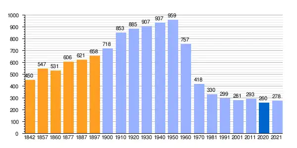 Población de derecho (1842-1897, excepto 1857 y 1860 que es población de hecho) según los censos de población del siglo XIX. Población de derecho (1900-1991) o población residente (2001-2011) según los censos de población del INE. Población según el padrón municipal de 2020, 2021 del INE. |