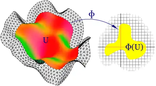 Dado un espacio topológico, llamaremos carta de dimensión en a un par tal que la aplicación cumpla que sea un abierto y sea un homeomorfismo(biyectiva, continua e inversa continua).