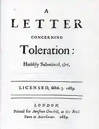 Carta sobre la tolerancia son una serie de cartas que el filósofo John Locke publicó entre los años 1689 y 1690, que ofrecen en buena medida las bases ideológicas esenciales para su teoría política expuesta por las mismas fechas en Dos tratados sobre el gobierno civil. La obra apareció en medio del temor de que el catolicismo se apoderara de Inglaterra, y responde al problema de la religión proponiendo la tolerancia religiosa como respuesta. Esta carta estaba dirigida a un amigo cercano de Locke, Philipp van Limborch, quien la publicó sin el conocimiento de Locke. Su publicación inicial fue en latín, aunque se tradujo de inmediato a otros idiomas.[1]